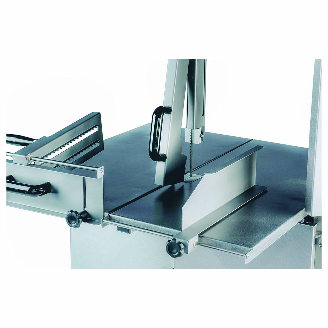 A Serra de Fita para Ossos SFO 3.10é um equipamento indicado para uso em: açougues, peixarias e supermercados. O cabeçote, e a mesa removível são construídos em chapa de aço inox 304 ou 430 que proporcionam maior durabilidade, facilidade de limpeza e higiene. As polias e volantes são produzidos em ferro fundido e os dispositivos de segurança como: protetor de fita, empurrador e esticador também são construídos em aço inox. O botão de emergência posiciona-se estrategicamente na frente do operador. Desta forma o seu manuseio é feito de forma rápida, prática e precisa.